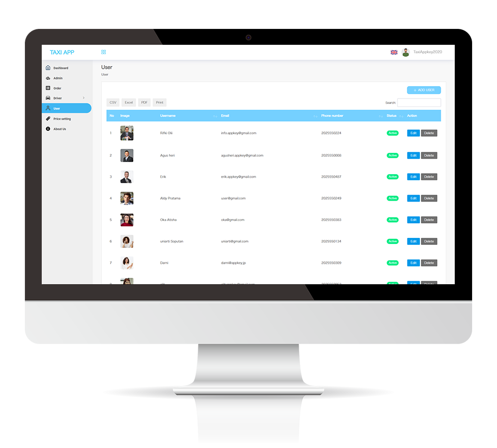 The taxi dispatch application comes standard with a web-based management screen that allows you to build, manage and update the application content without the need for specialized knowledge of app operation.