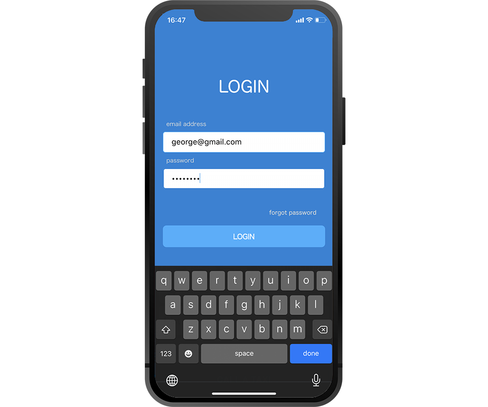 To log in to the app, users simply enter their registered email address and password.
