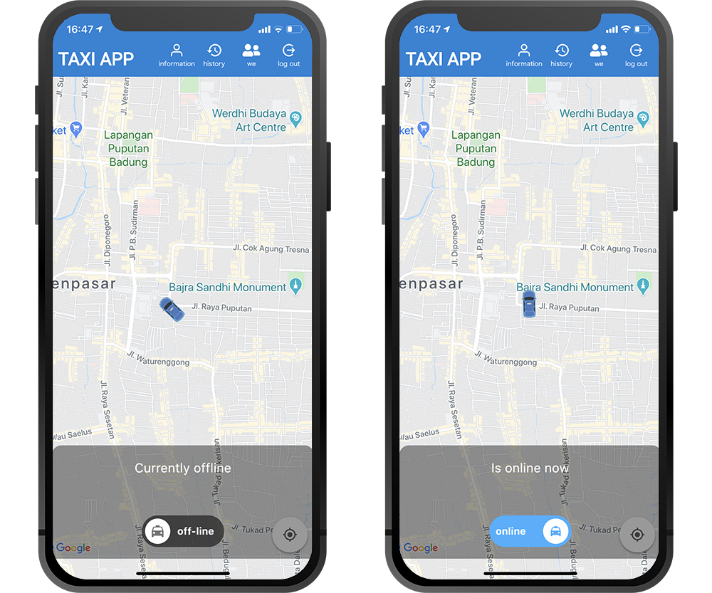 The app for drivers can edit and manage information from a web-based backend in the same way as the app for users.