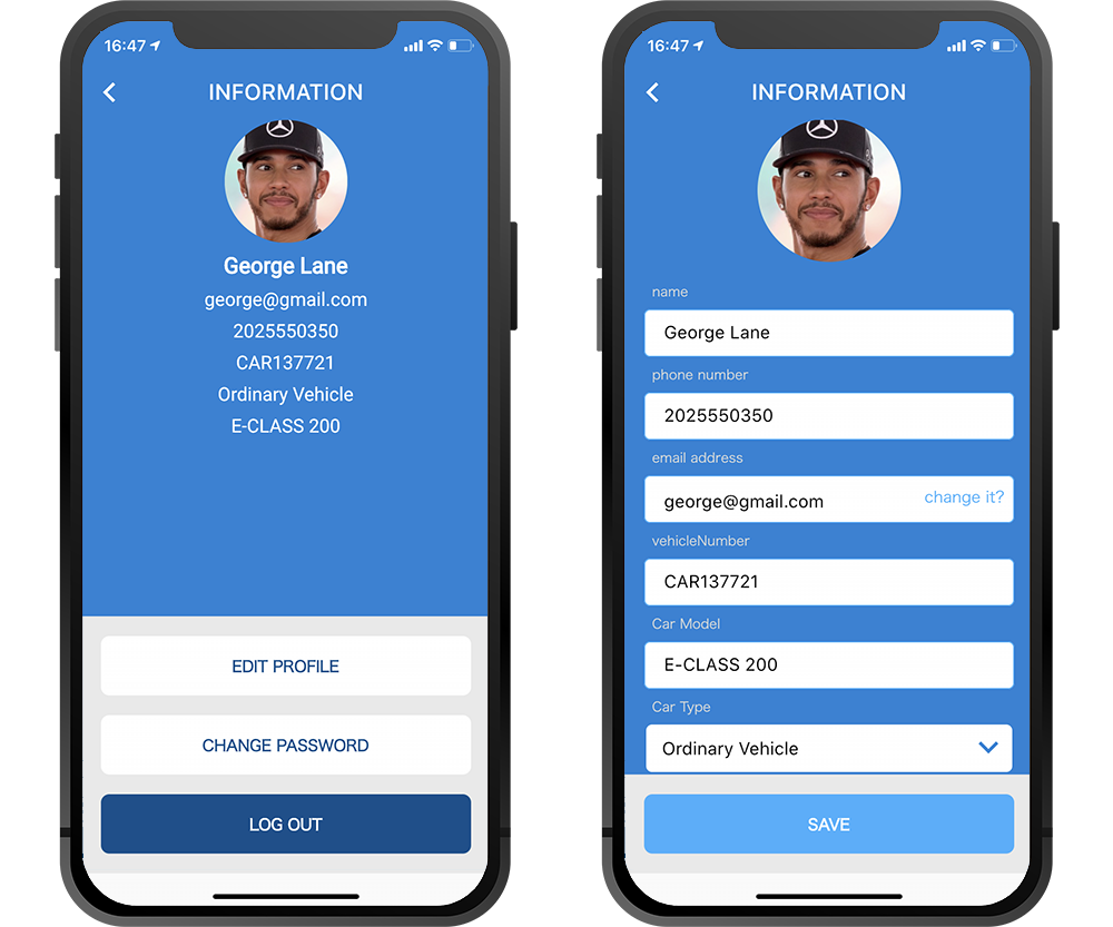Drivers can change their own name, phone number, email address, etc. after logging in.