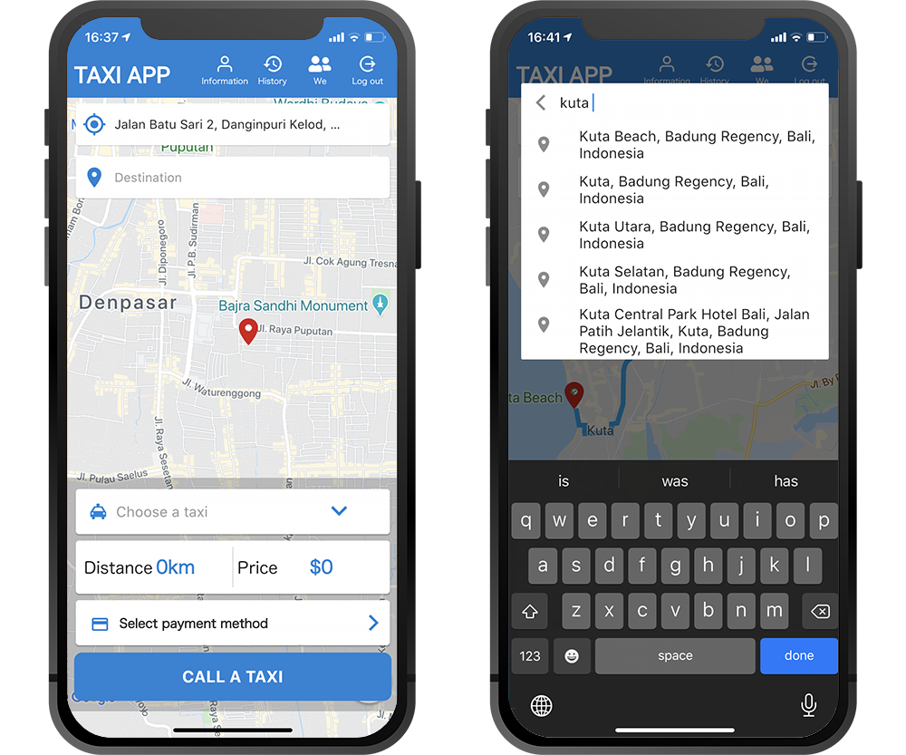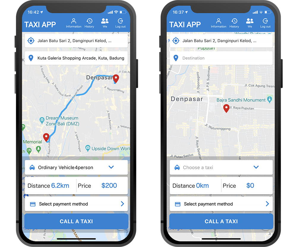 This is the front-end design of the taxi dispatch app for users.