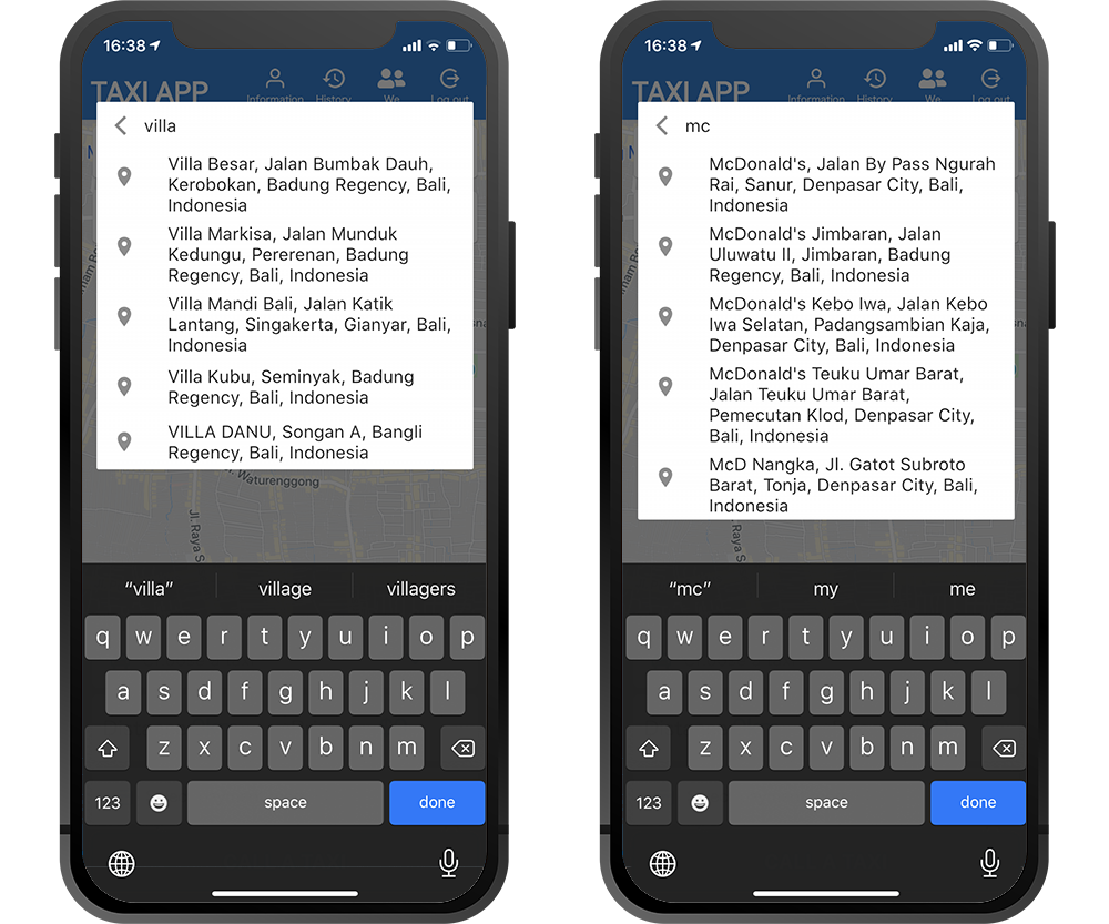 The Place Picker feature is one of the features included in this application. This feature allows the user to easily select the coordinates of the destination. Just type in the name of the desired location and the application will automatically display the coordinates of the location. The coordinates are sent to the driver as order information.