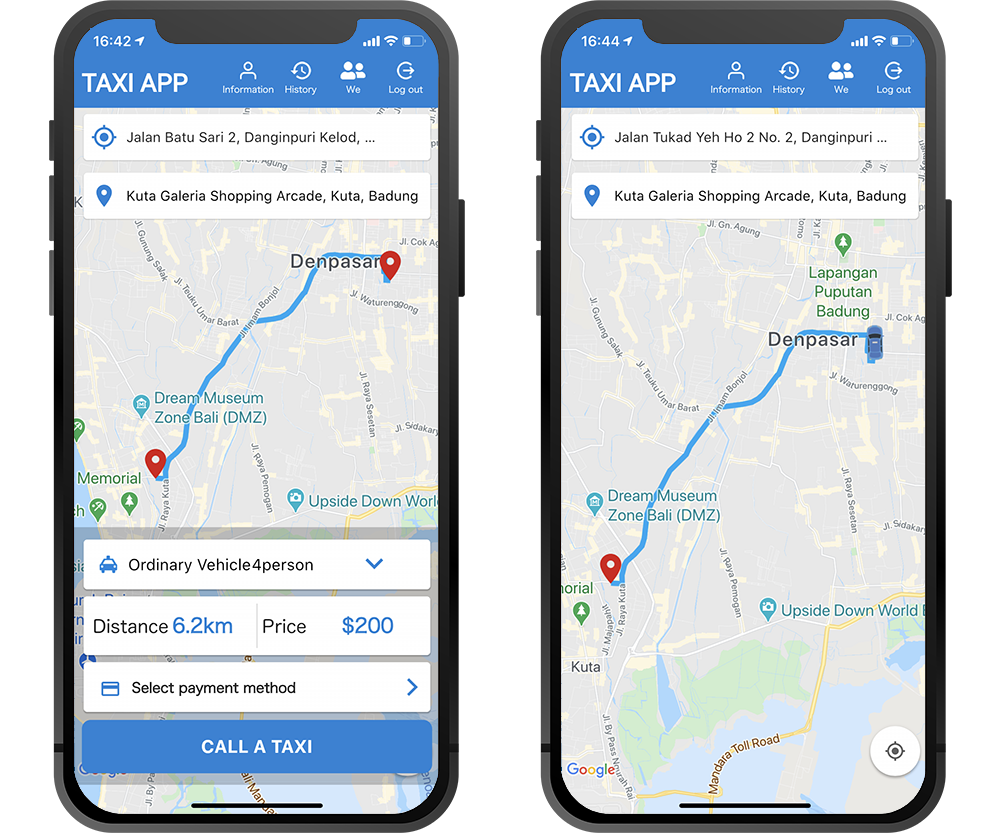 All you have to do is enter your destination and pick-up point, and the taxi dispatch app will display the route, distance to your destination, and fare on the map.